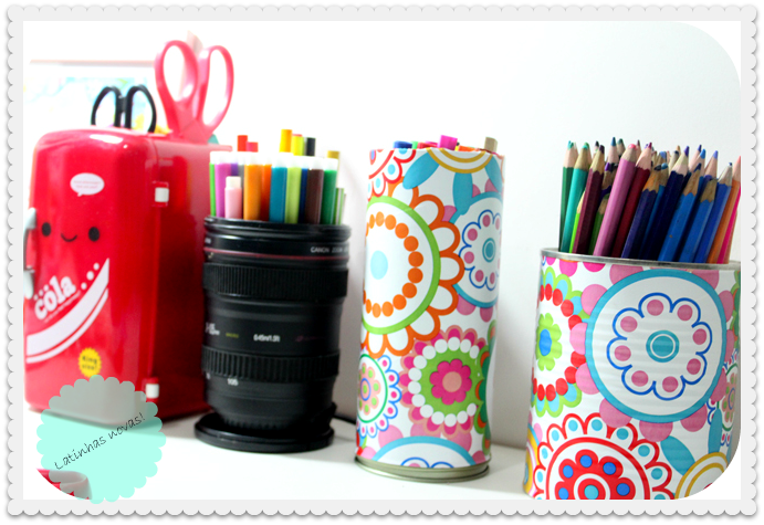 adoro latas, o contact colorido ficou lindinho nelas!