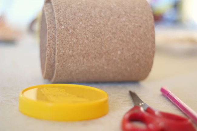 A solução para esse problema apareceu no dia em que precisei comprar a cortiça para fazer o mural chevron do cantinho das coisinhas. Depois de medir direitinho a cortiça na parede, sobraram umas aparas que foram a conta exata para fazer os porta copos :)